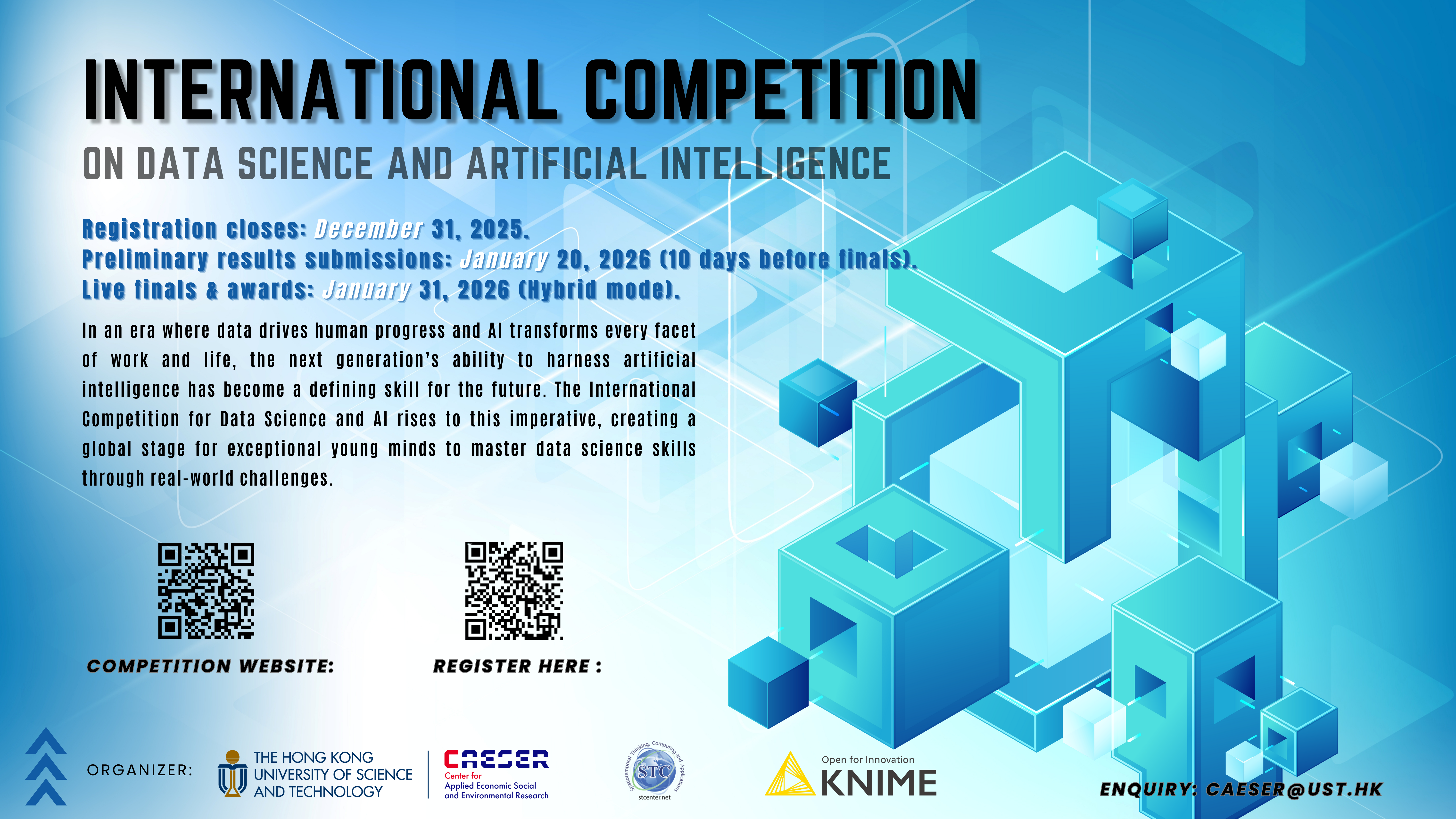 Hosted by The Center for Applied Economic, Social and Environmental Research (CAESER) at the Hong Kong University of Science and Technology (HKUST), U.S. NSF Center for Spatiotemporal Thinking, Computing, and Applications (STC) at George Mason University, and KNlME AG, this premier challenge will empower high school and university students worldwide to solve global, data-driven challenges. This entails analyzing real datasets and enhancing AI by redesigning workflows to make models faster, more innovative, and more efficient.